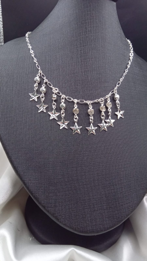 CHOKER EM PRATA 925 COM PINGENTES DE ESTRELAS