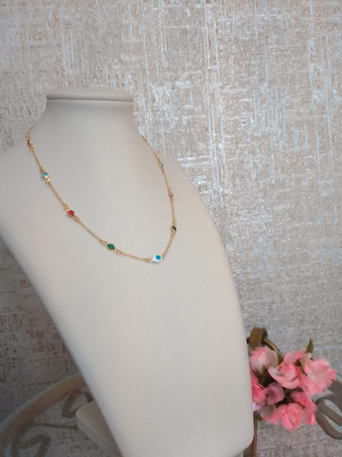 CHOKER BANHADA A OURO ZIRCÔNIAS COLORS OLHO GREGO