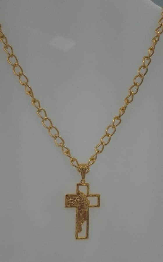 Colar unissex crucifixo banhado a ouro