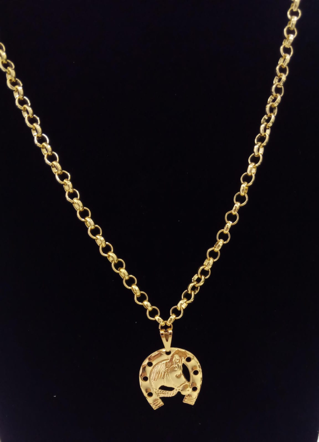 Colar pingente de cavalo com ferradura banhado a ouro