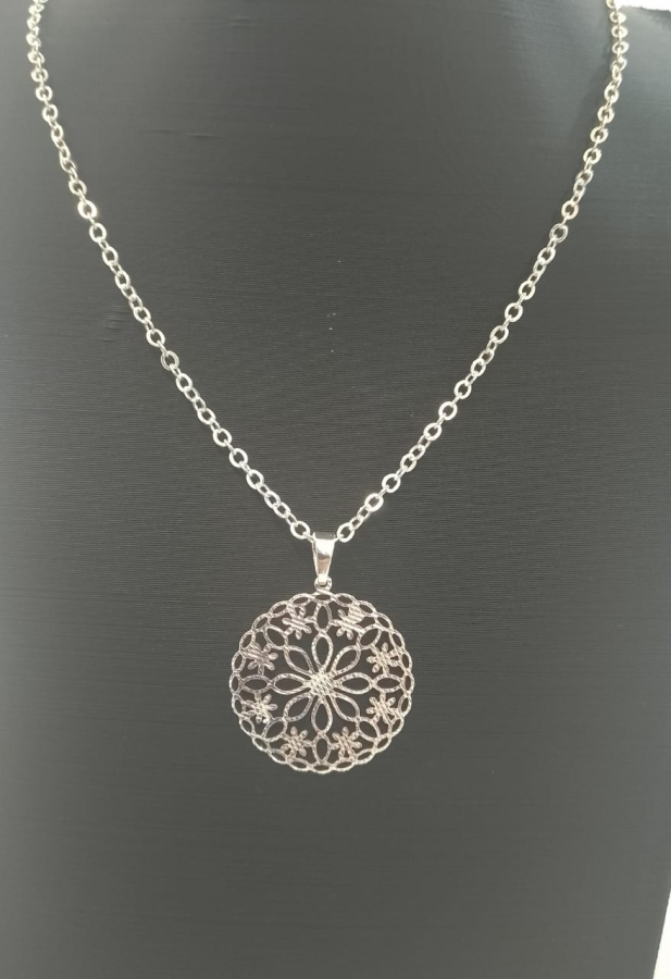 Colar mandala banhado a ródio branco