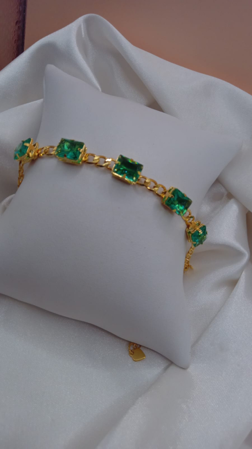 PULSEIRA BANHADA A OURO COM ZIRCÔNIAS QUADRADAS