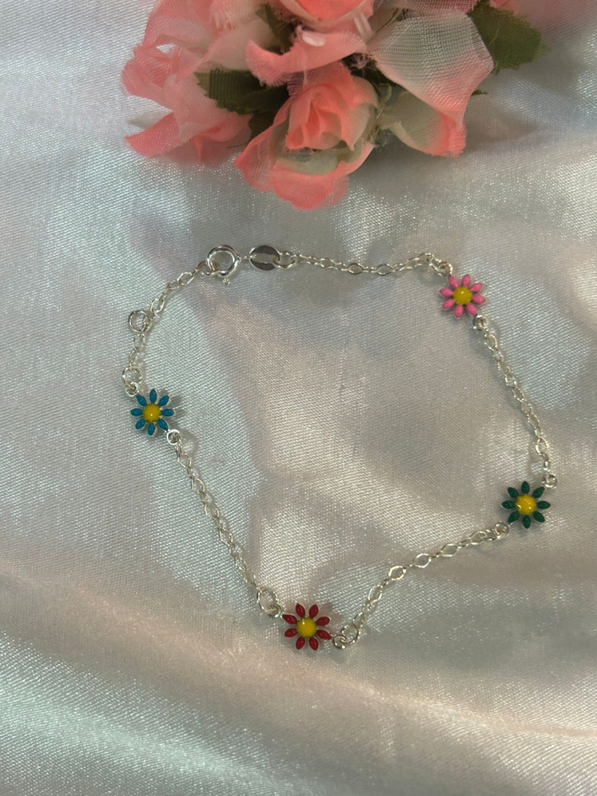 PULSEIRA FLORES COLORIDAS EM PRATA