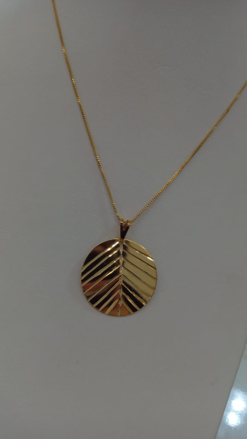 VENEZIANA COM PINGENTE REDONDO EM FORMATO DE FOLHA