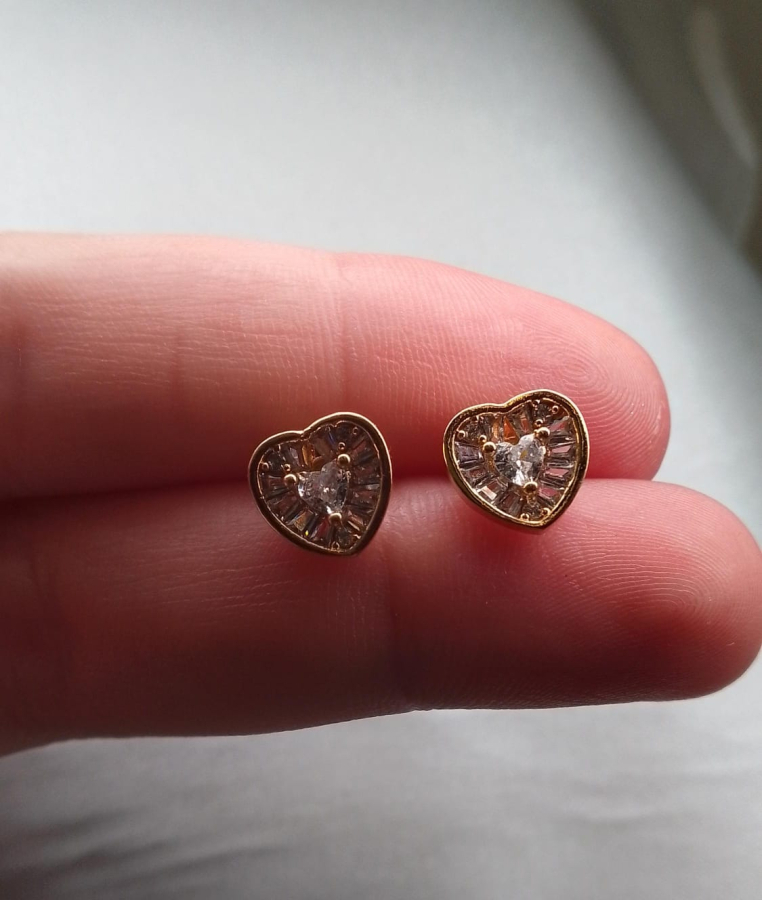 BRINCO CORAÇÃO BANHADO A OURO CRAVEJADO COM MICROZIRCÔNIAS