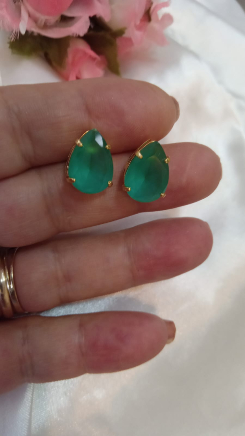 BRINCO BANHADO A OURO COM PEDRA ZIRCONIA CORAÇÃO VERDE