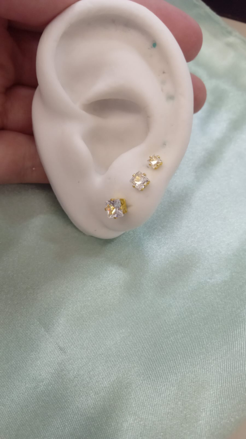 Brinco quadrado banhado a ouro com zircônia