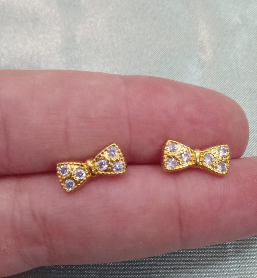 Brinco laço cravejado banhado a ouro