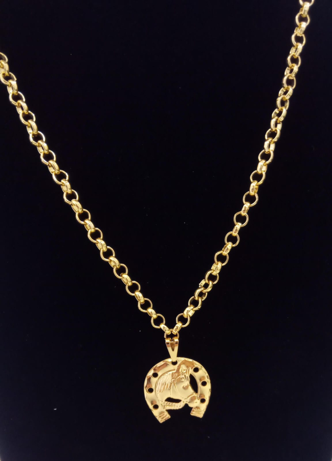 Colar pingente de cavalo com ferradura banhado a ouro