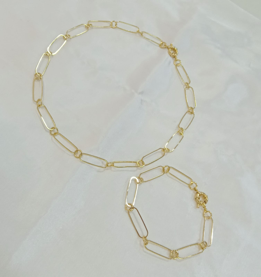 Conjunto de pulseira e colar choker banhado a ouro