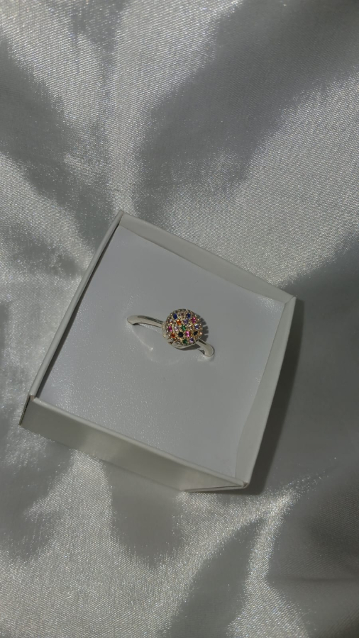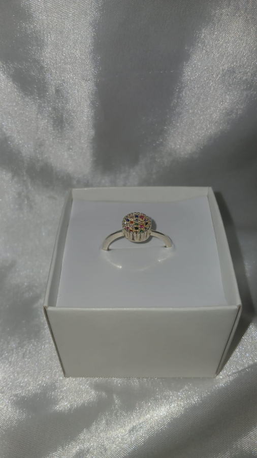 ANEL EM PRATA 925 COM MICRO ZIRCÔNIAS COLORIDAS. ANEL TAMANHO 22.