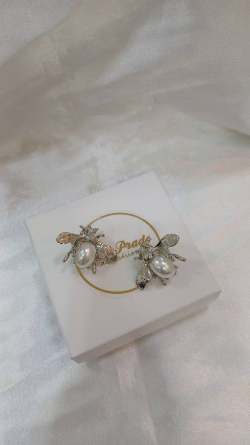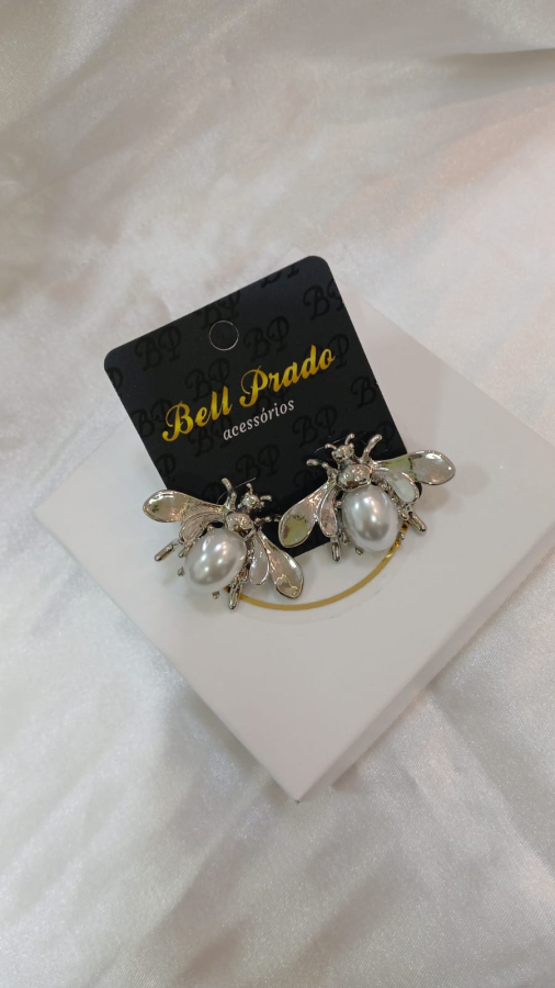 BRINCOS EM FORMATO DE ABELHA BANHADOS Á RÓDIO BRANCO