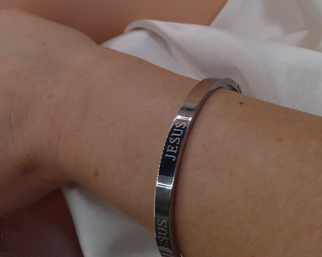 BRACELETE EM BANHO DE RÓDIO BRANCO JESUS